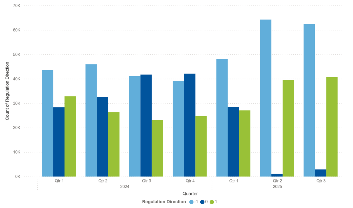 The Q2 data show that one of the most visible changes after the EAM launch is the near disappearance of imbalance settlement periods (ISPs) without a defined regulation direction. The rate of ISPs without a dominating direction increased slightly from 1% in Q2 to 2,7% in Q3.
